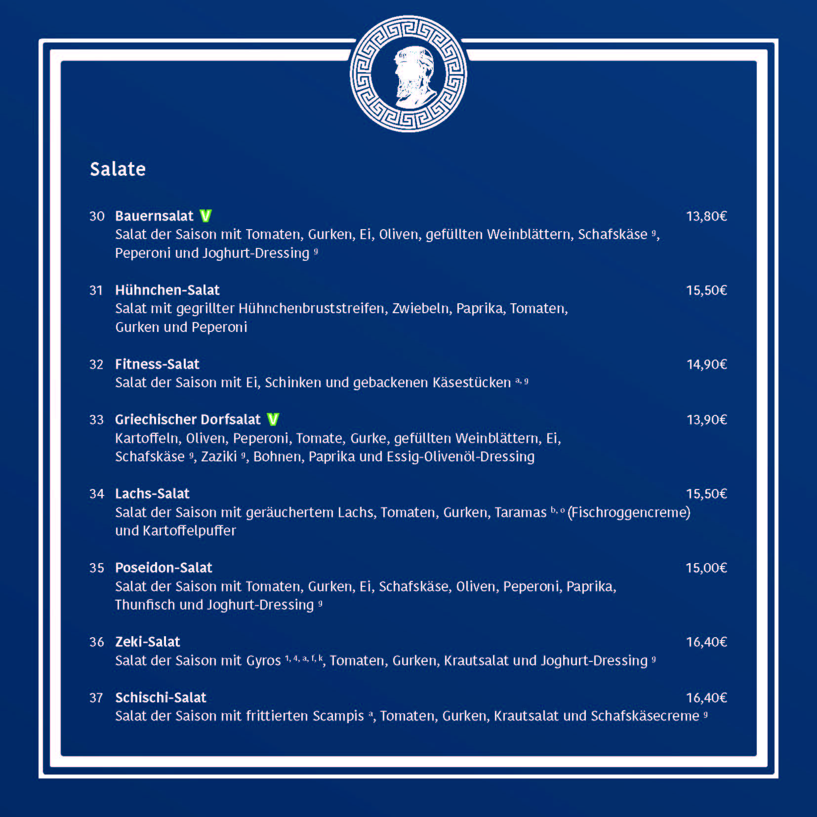 Unsere griechische Küche wird Sie mit besonders authentischen und traditionellen Gerichten begeistern. Lassen Sie sich von unseren köstlichen Speisen und einer umfassenden Auswahl an kühlen Getränken verwöhnen. Die Salate werden Sie überzeugen.